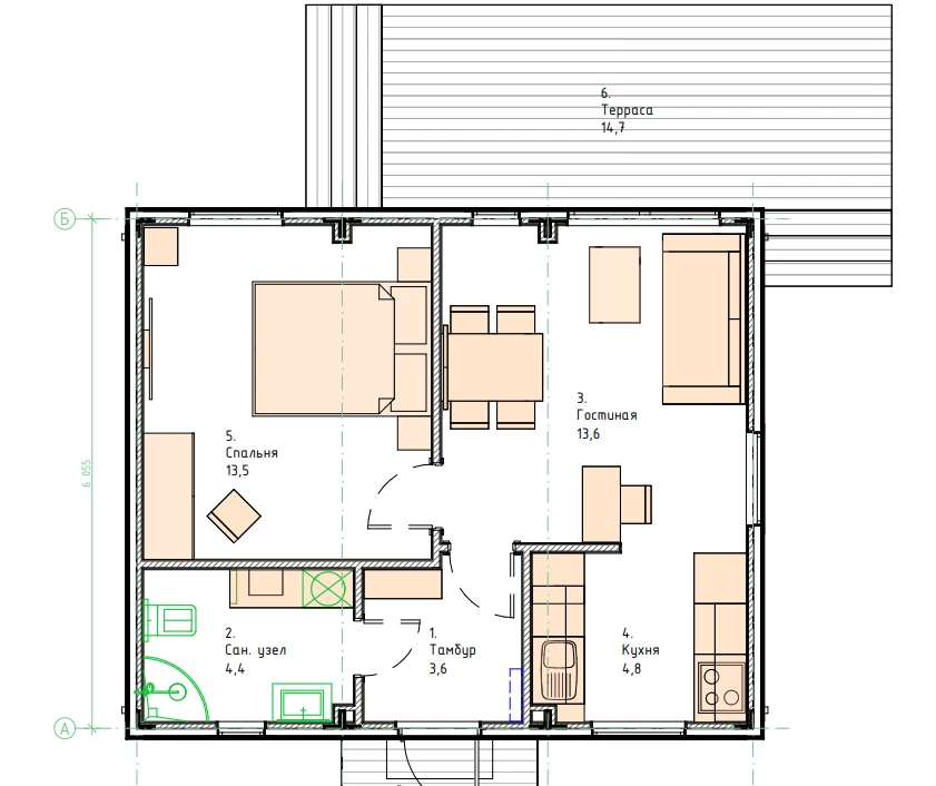 Отличная планировка, качественные материалы. Рекомендую эту модель для семьи из 3-4 человек.